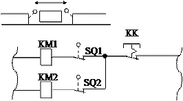 При работе двух контакторов вперёд-назад (KM1 и KM2), используется перекрёстное включение их размыкающихся контактов в цепи катушек не допуская включение первого контактора при включенном другом. Такая блокировка применяется в реверсивных электроприводах и электроприводах с электрическим торможением и разгоне двигателя по ступеням. Механическое блокирование (KM1) и (KM2) осуществляется с помощью сдвоенных двухсцепных кнопок управления, имеющих замыкающиеся и размыкающиеся контакты, связанные одним толкателем. Нажатие на кнопку приводит к одной цепи и размыканию другой цепи. 8.Путевая защита.