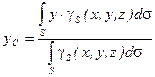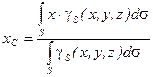 Если твердое тело представляет собой неоднородную поверхность, то координаты центра тяжести в выбранной системе отсчета определяются следующим образом: