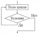 Цикл с постусловием («делай-пока»). Предписывает выполнять тело цикла до тех пор, пока не выполняется условие (на Паскале until), записанное после слова пока. В отличие от цикла, «пока-делай» тело цикла выполняется хотя бы один раз.