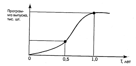 Рис. 10.6. Кривая освоения объекта в серийном производстве