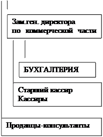 2.2 Анализ внутренней среды в салоне «Ямаха» Рассматриваемая компания действует на основании Устава и в соответствии с Трудовым и Гражданским Кодексами. Высшим органом управления является Собрание участников. Членами собрания являются учредители. Собрание заседает не реже раза в полугодие, также возможно внеочередное заседание, условия оговорены в Уставе общества. Собранием учредителей назначен генеральный директор (является одним из учредителей) и главный бухгалтер. Основные функции административно-хозяйственной части: 1. Управленческие. Эти обязанности подразумевают: - построение организационной структуры; - планирование работы; - руководство персоналом - разработку и внедрение корпоративной культуры; - разработку политики общения с клиентами. 2. Административные. Под административными обязанностями понимаются организация делопроизводства в офисе, построение взаимоотношений между структурными подразделениями, «зонирование» офиса и т.д. 3. Хозяйственные обязанности. Они начинаются с организации закупки офисной техники, комплектующих, расходных материалов и заканчиваются руководством по установке оборудования и постановке его на техническое обслуживание, обеспечением взаимодействия с обслуживающей сервисной организацией. 4. Контрольные обязанности. Здесь подразумевается проведение инвентаризаций и ревизий материальных ценностей, аттестация персонала, организация внутренней отчетности и осуществление иных мероприятий по контролю. 5. Отчетные. Они включают в себя: организацию подготовки отчетов перед вышестоящим руководством для контроля со стороны последнего. Организационная структура салона «Ямаха» представлена на рис.3.