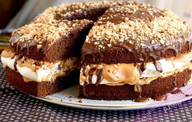 1) Торт " Сникерс" (шоколадный бисквит с прослойкой безе, карамельным кремом и жареным арахисом). Очень вкусный и сытный тортик. – 1200 руб/кг