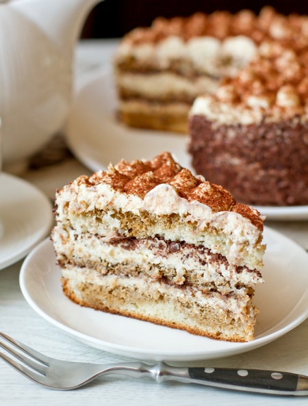 5) Торт «Тирамису» (торт по мотивам итальянского десерта «Тирамису», пропитанный кофе, с кремом на основе маскарпоне и сливок). Знаменитый итальянский торт тирамису (tiramisu) необычайно вкусен. Об этом говорит его название, которое можно перевести на русский язык примерно так – «Унеси меня на небеса» -1400 руб/кг