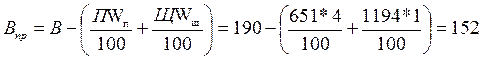 Определить расход материалов в состоянии естественной влажности замес бетоносмесителя вместимостью 1200л (по объёму загружаемых материалов). Влажность песка – 4%, влажность щебня – 1%. Номинальный состав бетона на 1 м3: Ц = 285 кг, В = 190 кг, П = 651 кг, Щ = 1194 кг. Насыпная плотность цемента – 1300 кг/м3; песка – 1450 кг/м3; щебня – 1400 кг/м3. Производственный состав бетона с учётом влажности материалов составляет: а) по массе: Цпр = Ц = 285 кг/м3;