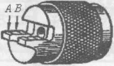 Контроль конических поверхностей Измерение конусности наружных конических поверхностей может выполняться шаблоном или универсальным угломером. Для более точных измерений конусов применяют калибр-втулки. С помощью калибр-втулки проверяют не только угол конуса, но и его диаметры (рис. 3). На обработанную поверхность конуса наносят 2-3 риски карандашом, затем надевают калибр-втулку на измеряемый конус детали, слегка нажимая вдоль оси и поворачивая ее. При правильно выполненном конусе все риски стираются, а конец конической детали находится между метками А и В калибр-втулки. а