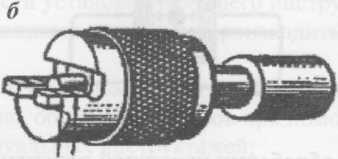 Рис.- 3. Конические развертки: а - предварительная (или промежуточная); б - чистовая Перед развертыванием в сплошной заготовке сверлят отверстие по размеру меньшего диаметра конуса. Для крупных инструментальных конусов его рекомендуется дополнительно расточить с припуском 0, 4....0, 6 мм на диаметр. Конические развертки работают в более тяжелых условиях по сравнению с цилиндрическими, т. к. они режут металл по всей длине зуба. Вследствие этого режим резания для них несколько снижают: ручная подача - 0, 1...0, 3 мм/об, скорость резания - 4...6 м/мин. В качестве смазочно-охлаждающих жидкостей при обработке сталей применяют эмульсию с сульфофрезолом или смесь растительного масла, скипидара и керосина. Чугун и цветные металлы развертывают без охлаждения или с керосином. Контроль конических отверстий Годность конических отверстий можно определять поэлементно или комплексно. При поэлементном контроле каждый элемент конуса измеряют отдельно линейкой, штангенциркулем, угломером. Комплексный метод контроля используется при изготовлении деталей с точными сопряженными коническими поверхностями и осуществляется калибрпробками.