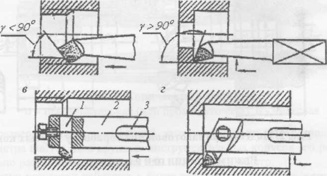Диаметр отверстия детали для последующего растачивания выполняется меньше на 0, 5...1, 0 мм меньшего диаметра конуса. Расточные резцы Расточные резцы применяются для растачивания цилиндрических отверстий, которые устанавливаются на 0, 02 диаметра отверстия выше оси центров станка. Это вызвано необходимостью компенсации прогиба резца от воздействия сил резания в процессе обработки.