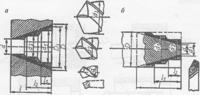 Растачивание конических отверстий 1. 1.1. Возьмите спиральное сверло (рис. 1) диаметром меньше на 1...2 мм меньшего диаметра обрабатываемого конического отверстия и просверлите отверстие под растачивание конического отверстия с пологим конусом. 1.2.
