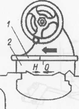Метод обработки конусов при помощи корпуса задней бабки: а - смещение корпуса задней бабки по направляющим ее основания на себя (при обработке конусов, устанавливаемых большим диаметром конуса в сторону передней бабки); б - смещение корпуса задней бабки по направляющим ее основания от себя (при обработке конусов, устанавливаемых большим диаметром конуса к задней бабке); в - смещение корпуса задней бабки отсчетом величины по измерительной линейке