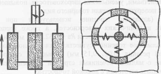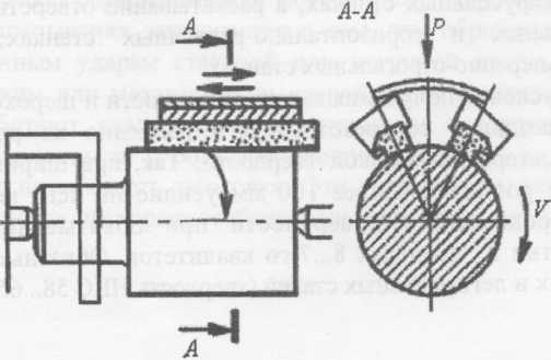 Хонингование осуществляется хонинговальной головкой (хоном), оснащенной шестью и более абразивными раздвижными брусками, совершающими вращательное и возвратно-поступательное движение вдоль оси обрабатываемого отверстия (рис. 2). Зернистость брусков выбирают в зависимости от требуемой шероховатости обработанной поверхности и величины припуска. Точность хонингования в пределах 5-го квалитета, шероховатость обработанной поверхности R а = 0, 05...0, 025 мкм.