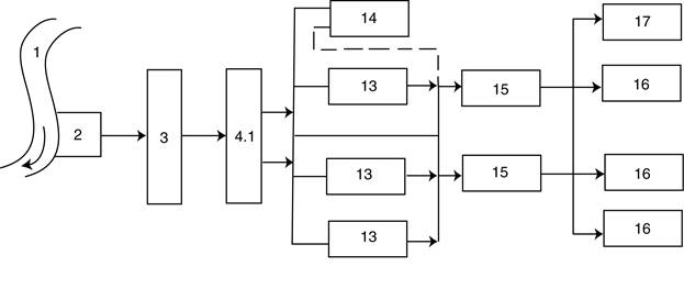 Бессточные системы водоснабжения (рис.11.7) являются наиболее современными и экологически чистыми типами систем. Они могут быть построены путем развития, объединения конструкций существующих систем предприятия. Доработка заключается в частичном изменении конфигурации сети и включению в систему установок для очистки или утилизации сточных вод и шламов. Для организации правильной работы бессточной системы все потребители делятся на три группы: 1) потребители “грязного” цикла (охлаждение металлорежущих станков, промывка деталей и т.д.) 2) потребители “чистого” цикла (ТЭЦ, компрессорные установки и холодильные установки и т.д.) 3) потребители “безвозвратного” цикла (установки для мокрого тушения кокса, установки гидро–обеспыливания и д.р., качество воды для которых не имеет значение) Принцип работы бессточных систем заключается в следующем: после забора воды из природного источника и прохождении через водозаборное устройство 2, насосные станции 3 и очистные сооружения природной воды 4.1, вода поступает в трубопроводы чистой воды 8, с помощью которой снабжаются основные потребители “чистого” цикла. Часть воды поступает на ХВО 14 и направляется к потребителям, предъявляющим повышенные требования к воде. Сюда же поступают сточные воды потребителей “чистого” цикла. Другая часть сточных вод, не прошедшая очистку, поступает к потребителям “грязного” цикла, при этом обязательным условием является то, что суммарная мощность сбрасываемых вод 13 достаточна для удовлетворения нужд группы потребителей 15. Потребители “безвозвратного” цикла выделяют в группу 16 и обеспечиваются водой через безвозвратную сеть 18. остаточные нерастворимые элементы накапливаются в шламовом хозяйстве 17. Положительные моменты: — высокая экологическая чистота системы; — практическая реализация внедрения в производство принципов сберегающих технологий. Недостатки: — высокая стоимость сооружений; — большие эксплуатационные расходы.