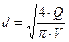 где Q — количество воды потребляемой предприятием, V — скорость течения воды. Зависимость между Q и V выражается формулой: