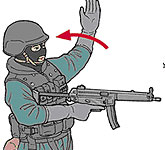 Перед выполняющей тактическую задачу группой возникает проблема взаимопонимания и коммуникации. Естественно, что никто не будет в полный голос обсуждать очерёдность прохода дверного поёма, варианты зачистки углов или информировать напарников о том, что за углом притаился противник. Между тем, без обмена информацией не обойтись, и передаваться она будет средствами невербальной коммуникации. Средством невербальной коммуникации первостепенной важности является визуальный контакт с партнером, благодаря которому в буквальном смысле ощущается направление его движения и соответственно делается вывод о том, какую зону он контролирует. Если кто-то замечает что-то подозрительное, самое простое — положить руку на плечо напарника или остановить его, схватив за пояс. Для передачи абстрактных сигналов используется язык жестов. Предлагаемые ниже варианты сигналов, подаваемых руками, разбиты на две части. Первая – упрощённая, состоящая из небольшого числа базовых сигнальных жестов. Второй вариант – это система знаков специальных подразделений S.W.A.T., которые используют настоящий язык жестов. Упрощенный вариант Упрощенный вариант используется как основной способ невербальной коммуникации т.к. прост в обращении и запоминании, а также содержит минимально необходимый набор жестов.