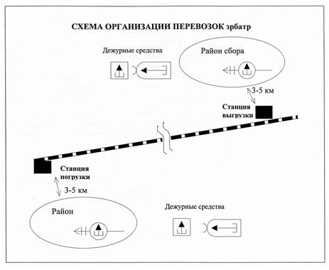 До погрузки подразделение находится в районе ожидания, а после выгрузки выходит в район сбора. Районы ожидания и сбора, исходя из условий, местности назначаются в 3-5 км от места погрузки и выгрузки (Рис.64). В районе ожидания (сбора) подразделение войсковой ПВО может развертываться на стартовых позициях. Время пребывания в районе ожидания используется для подготовки к погрузке и последующим действиям (перевод БМ в транспортное положение, подготовка крепежного материала, шанцевого инструмента, изучение мер безопасности и функциональных обязанностей номеров расчетов при погрузке и т.д.) Район ожидания может не назначаться, если район, в котором находится подразделение, расположен ближе 10 км от места погрузки.