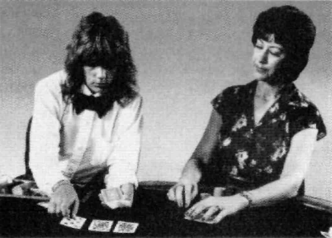 Жест #16 Название: Отличный «флоп», лучше убедиться, что мои фишки всё ещё тут. Категория: Быстрый взгляд на фишки. Описание: Быстрый взгляд на фишки очень часто встречается в холдеме. На Фото 28 женщина смотрит «флоп». Инстинктивно, она бросает взгляд на свои фишки (Фото 29). Но вам нужно следить внимательней, чтобы не пропустить это, потому что на Фото 30 – всего лишь одну секунду спустя – она снова смотрит на «флоп». Мотивация: Инстинктивная реакция на то, что «флоп» улучшил её руку. Достоверность: Слабые игроки = 98% Средние игроки = 96% Сильные игроки = 90% Ценность в час: $1 лимит = 2.75$ $10 лимит = 9.50$ $100 лимит = 40.00$ Обсуждение: Этот жест похож – и, фактически, идентичен – предыдущему. Тем не менее, женщина не отводит взгляда от общего действия. Вместо этого, она предпочитает изучать «флоп». Разумеется, она уже отлично знает, что «флоп» улучшил её «руку», и не нуждается в изучении. Женщина просто пытается показать вам, что она слабее, чем есть на самом деле. Если бы вы смотрели на «флоп» – как неизменно делают даже многие профессиональные игроки – вы бы упустили эту, весьма прибыльную, возможность узнать, что теперь эта женщина обладает сильной «рукой». Лучшая стратегия: Чтобы состязаться с этим игроком, вам нужна более сильная рука, чем обычно. Не пытайтесь блефовать против этой женщины. Не пытайтесь поймать её на блефе. Если же вы хотели сыграть «чек-рейз», то вам представилась хорошая возможность.