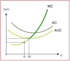 AC = TR = SPBAQpm TC = SOCBQpm p = -SPCBA (economic loss) FC = SFSAH In case of stopping production the loss would be more and profit covers fixed costs, but it doesn’t cover average costs and sell of each product helps to cover FC. So it’s better to continue production.