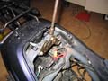 Принимаемся за железо. Первым делом снимаем бензобак (42-43-44), аккуратно стянув шланг со штуцера не забудте закрепить его на раме так, чтобы оттуда не вытекал бензин.