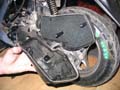 Чистый и целый воздушный фильтр – одно из главных условий долговечной и надежной работы двигателя – посмотрим. Раскрутим коробку фильтра (45-46), снимем крышку – в нашем случае все оказалось хорошо (47) – поролон промаслен специальным маслом для воздушных фильтров (судя по запаху) и не имеет повреждений (в случае, если Ваш поролон поврежден, непременно смените его на новый), уплотнитель без дефектов. Демонтируем корпус самого фильтра (48-49).