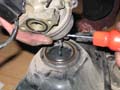 Освобождаем нижнее крепление амортизатора (57), выкручаваем ось, на которой качается подрамник двигателя (58-59) и вытаскиваем двигатель(60).