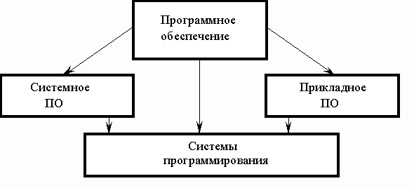 Программное обеспечение (ПО) - это совокупность всех программ и соответствующей документации, обеспечивающая использование ЭВМ в интересах каждого ее пользователя. Различают системное и прикладное ПО. Схематически программное обеспечение можно представить так: