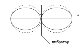 Такую антенну называют полуволновым вибратором. Наглядное представление о характере излучения даёт диаграмма направленности (ДН), отражающая зависимость плотности потока мощности от направления в пространстве. ДН вертикально расположенного полуволнового вибратора представлена на рис.6.6. В горизонтальной плоскости ДН имеет вид окружности, в вертикальной вид − вытянутых восьмёрок. Диаграмму направленности полуволнового вибратора (1) можно улучшить, если в направлении, обратном излучению, установить рефлектор (2) на удалении от активного вибратора менее λ /4 и в направлении излучения установить директоры (3), подбирая их длину и расстояние между ними (рис.6.7).