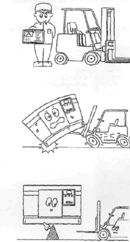 К использованию погрузчика должны допускаться только уполномоченные операторы. ОСТОРОЖНО: 2) Учитывайте массу станка, чтобы определить грузоподъемность погрузчика Масса станка MT-52 4200 кг (9240 фунтов) MT-75 5000 кг (11000 фунтов ) ОСТОРОЖНО: 3)Центр тяжести станка должен находиться по центру вил 5.2.3.3 Перемещение станка при помощи катков 1)