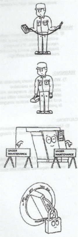 Установите легко заметную табличку, указывающую на проведение работ на станке и запрещающую его эксплуатацию.