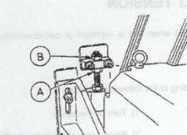 (1) Ослабьте регулировочную гайку A. (2) Затяните регулировочную гайку B. < Увеличение натяжения ремня> (1) Ослабьте регулировочную гайку В. (2) Затяните регулировочную гайку А. Затяните регулировочную гайку 6) Замерьте величину натяжения посредством динамометра. Выполните регулировку натяжения в соответствии с допусками, приведенными в следующей таблице.