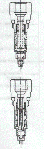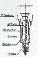 ВНИМАНИЕ: Насос включается на 30 секунд при первом включении питания. 2) Смазочное масло из емкости подается в приточный канал маслораспределителя через главную магистраль. 3) При повышении давления в трубе масло подает клапан вперед. 4) В то же самое время седло клапана (2) и втулка (3) подаются вперед, обеспечивая выброс масла через цилиндр втулки в ответвления масляной магистрали. 5) При остановке насоса давление в трубе понижается при помощи механизма сброса давления. Седло клапана (2) и втулка (3) возвращаются в исходное положение под действием пружины. 6) Масло в нижней части цилиндра над клапаном (1) поступает в масляную камеру в верхней части втулки (3) посредством направляющего штифта (5). Операции с 1) по 5) повторяются. ВНИМАНИЕ: Скорость подачи масла через выпускное отверстие установлена на уровне 0, 16 см3 за один ход.