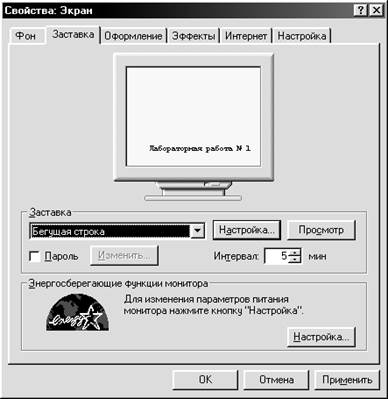 Рис.8. Диалоговое окно установки заставки Рабочего стола
