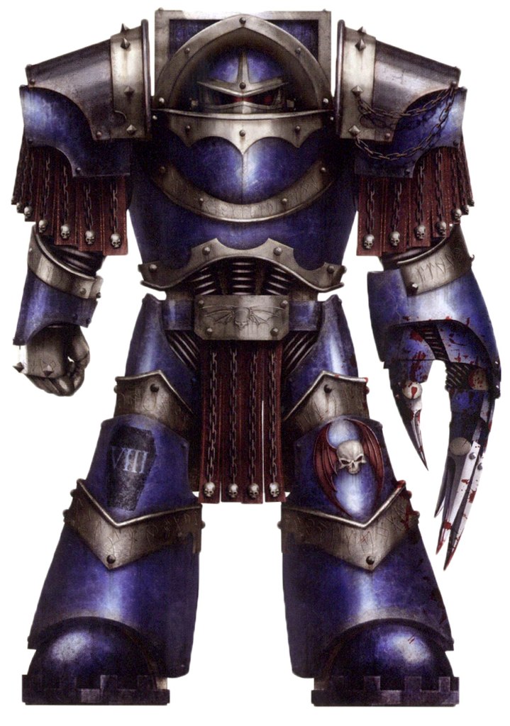 8-я рота, Наследники Кровавых Стражей («Круг Ненастья») Исстван V, Резня в зоне высадки. Во время высадки Повелителей Ночи на Исстван V легионер-ветеран Кастакс был самым старым членом Когтя терминаторов Восьмой роты. Известно, что Кастакс участвовал в Очистке Моренны, Йогготском Геноциде, Свержении лордов Эфрата и многочисленных кампаниях ужаса, проводимых Повелителями Ночи. Он был единственным выжившим в Суккотском предательстве – битве, стоившей Восьмой роте ужасающих потерь, среди которых были и последние легионеры-терранцы. Точные обстоятельства битвы неизвестны, хотя после нее ходило много дурных слухов. Полагают, что Кастакс пал в битве вскоре после того как Повелители Ночи открыто заявили о своей преданности Воителю. Истинные обстоятельства его гибели остаются тайной, так как немногие из Когтя терминаторов Восьмой роты пережили сражение на Исстване. Согласно некоторым докладам, его труп лежал в окружении павших братьев, а также лишь немногие из его ран были нанесены ему спереди. Боевое снаряжение: 1 тяжелый огнемет модели «Фестос». Использовался легионером-ветераном Кастаксом большую часть его службы. Он был известен своей тягой к страху, который враги испытывали в тот момент, когда осознавали, какая именно смерть их ждет. 2 комбиболтер/плазменная винтовка модели «Фобос». Известно, что Кастакс был вооружен этим оружием на Исстване V, по-видимому, считая его более тактически выгодным, чем обычный тяжелый огнемет, с учетом ожидаемого характера той битвы.