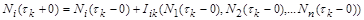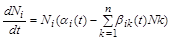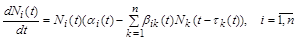 1.2.6. Узагальнення моделі багатовидової популяції. Узагальненням моделі (2.1.14) є модель, що враховує вплив зовнішніх факторів на розвиток популяції. Це може бути, наприклад, відловлення риби, збирання врожаю, запускання у водойму мальків. Проміжки часу, протягом яких відбувається зовнішній вплив, є малими порівняно з часом розвитку популяції, тому можна вважати, що такі впливи є миттєвими. Останнє приводить до математичних моделей, що є диференціальними рівняннями з імпульсною дією. Нехай