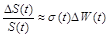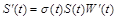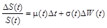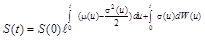 Формула (2.2.10) виражає вартість облігації в момент t і є неперервним аналогом формули складних відсотків. Акція – це документ про підтвердження права на частину майна підприємства та на певну частину прибутку. Ціна акції залежить від того, настільки прибутковим є підприємство, і від інших чинників (загальна політична ситуація в країні, економічний спад чи піднесення). Тобто на ціну впливають мікроекономічні фактори, що мають випадковий характер, і макроекономічні (загальнодержавні чинники), які на певний період часу можна вважати невипадковими. Тому ціна акції в момент t – S(t) є випадковою. Отримаємо рівняння для визначення ціни акції, припустивши, що в математичній моделі фінансового ринку випадкові чинники є незалежними та їх кількість є великою. Тобто результуючий випадковий фактор є сумою великої кількості однаково розподілених незалежних випадкових величин, що дає змогу застосувати в моделі центральну граничну теорему. При цьому зручніше розглядати не абсолютну зміну вартості акцій Нехай спочатку час
