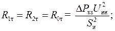 где – активные сопротивления трансформатора прямой, обратной и нулевой последовательностей; D P кз – мощность потерь в опыте короткого замыкания (КЗ); U нн – номинальное напряжение обмотки низшего напряжения трансформатора; – реактивные сопротивления трансформатора прямой, обратной и нулевой последовательностей; U к% – напряжение короткого замыкания, выраженное в процентах; S н – номинальная полная мощность трансформатора.