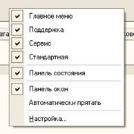 Панели инструментов, обычно размещенные ниже строки главного меню, предоставляют доступ к наиболее часто используемым возможностям системы. Для управления панелями инструментов можно щелкнуть правой кнопкой мыши по свободной области в верхней части окна программы, вызвав таким образом меню (рис. 3).