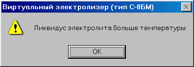 Таким же образом меняются значения в областях «Уровни и температура», «Состав электролита», «Окружающая среда». При введении ошибочных данных появляются следующие сообщения: