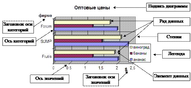 Представление данных при помощи диаграмм позволяет решать самые разнообразные задачи. Основное достоинство такого представления – наглядность. Диаграмма состоит из множества объектов, элементов (см. рис. 17).