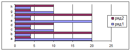 Рассмотрим некоторые типы и виды диаграмм. Первую группу составляют гистограмма, график, линейчатая диаграмма, а также диаграмма с областями (коническая, цилиндрическая и пирамидальная. Все эти диаграммы фактически являются гистограммами с изменённой формой элементов ряда). Они представляют собой набор элементов, размер которых определяется массивом значений. Они имеют ось значений для задания размера элементов данных и ось категорий для размещения подписей. У каждой из этих диаграмм имеется по три основных вида. Обычный – вид, при котором элементы различных рядов располагаются рядом друг с другом и начинаются от нулевого значения оси значений.