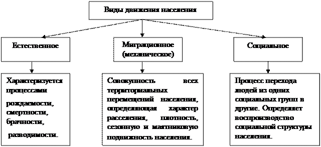 Прогрессивный тип воспроизводства населения - это пирамида типичного молодого растущего населения с высокой рождаемостью и сравнительно высокой, но снижающейся смертностью. Стационарный тип воспроизводства характеризуется снижающимся уровнем рождаемости и смертности (по сравнению с первым типом) за счет развития общества. Рост населения замедляется, а потом прекращается. Регрессивный или депопуляционный, тип воспроизводства - снижение смертности прекращается, а снижение рождаемости продолжается. Происходит вымирание населения.