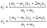 Умножая это уравнение один раз на m 2, а другой раз на m 1 и вычитая его из уравнения (2), получим выражение для обеих скоростей после удара: