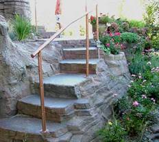 3. Sculpt the concrete - Use a point trowel to sculpt the concrete after applying to the form. Become familiar with how rock formations look and plan to be patient. Sculpting rock is a very marketable skill and takes practice to achieve consistent results. 4. Texture the concrete - Use a sea sponge to create a pock marked, weathered effect. Texture mat imprints from real stones will drastically increase the cosmetic value of your rock. Nothing looks more like real stone than an imprint made directly from a real stone. Texture mats will also help to provide inspiration for the sculpting process as you can continue the veins by hand past the edge of your texture mat impression. 5. Cure the concrete - Concrete takes a full month to cure and is about 75% cured after the first week. If the rock is left to sit in direct sunlight during curing stage hairline cracking will be excessive. Soak with water often to minimize hairline cracking and proper curing.