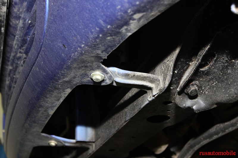 Передние тормоза дисковые, задние барабанные. Довольно противоречиво выбрано место для крепления топливного фильтра: он уязвим, но легко доступен для замены. Выхлопная система закреплена надёжно и рационально, на передней трубе, проходящей под картером двигателя наварен дополнительный теплоотражатель. Думаю, если машина когда-нибудь ударится днищем, то пострадает именно этот участок трубы, именно его заменят на обычный, без отражателя. Вскипит ли масло?