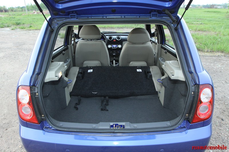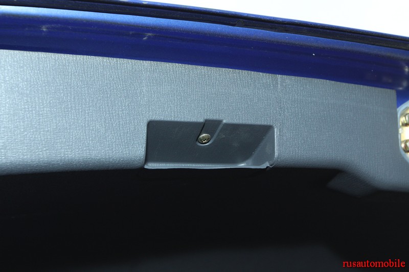 | Ручка одна, расположена она на нижнем торце двери. Её крайняя стенка очень тонка и прямо-таки «гуляет» под пальцами. Это не мешает закрывать багажник, но лишний раз подчёркивает: машина дешёвая. Есть ещё одна особенность: газовые упоры крышки багажника имеют выраженную «ступеньку»: поначалу дверь поднимается легко, но примерно на середине хода как-бы во что-то упирается. Это «что-то» нужно усилием преодолеть, и потом дверца вновь будет подниматься легко.