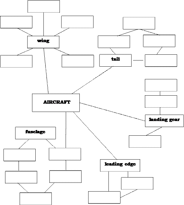 2 Look at these words for parts of a plane: wing tip door ailerons trailing edge wheel rudder window fuselage nose windshield engine nacelle slats stabiliser flaps tyre tail airbrakes elevators landing gear leading edge wing tail-fin nose gear spoilers Now fill in the ‘word tree’ below by putting a term in each box. (Some words are filled in for you.)
