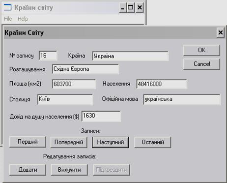 Рисунок 10.4 – Вигляд вікна програми обробки бази даних “Країни світу”