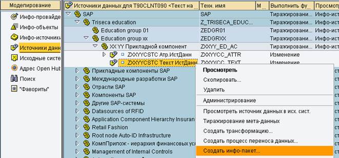 1. В этот раз создаем инфо-пакет на закладке «источники данных».