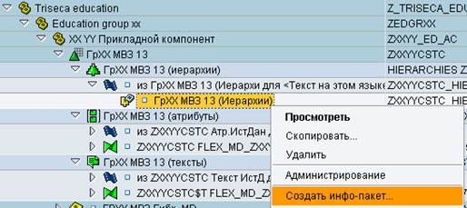 В поле Название введите имя инфо-пакета ГРXX Иерархия 1000. 2. На закладке «Выбор иерархии» нажмите 3. Введите имя иерархии Z_ED_HIER