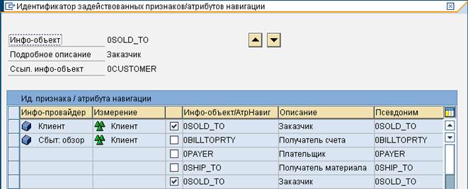 Для всех признаков – выберите оба инфо-куба в окне идентификации