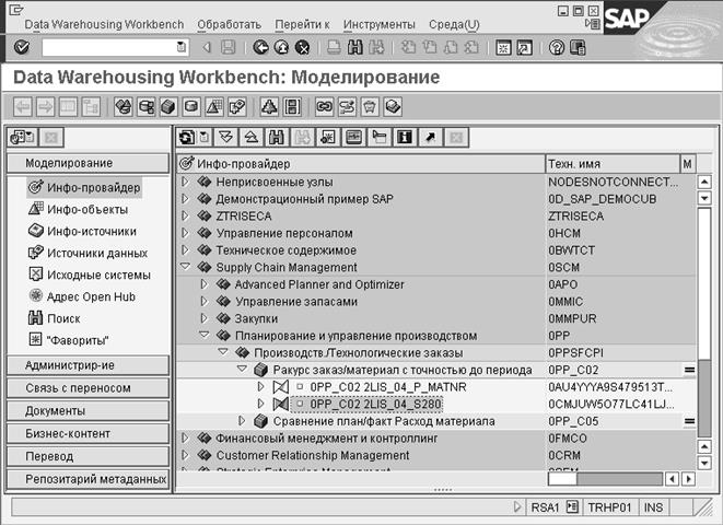 Рисунок 19 Центральный инструмент в SAP BW: инструментальные средства администратора