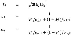 Wi, j – завихренность осредненного течения, sk, ske - турбулентные числа Прандтля, a* определено ранее. Весовые функции F1 и F2 определяют по формулам